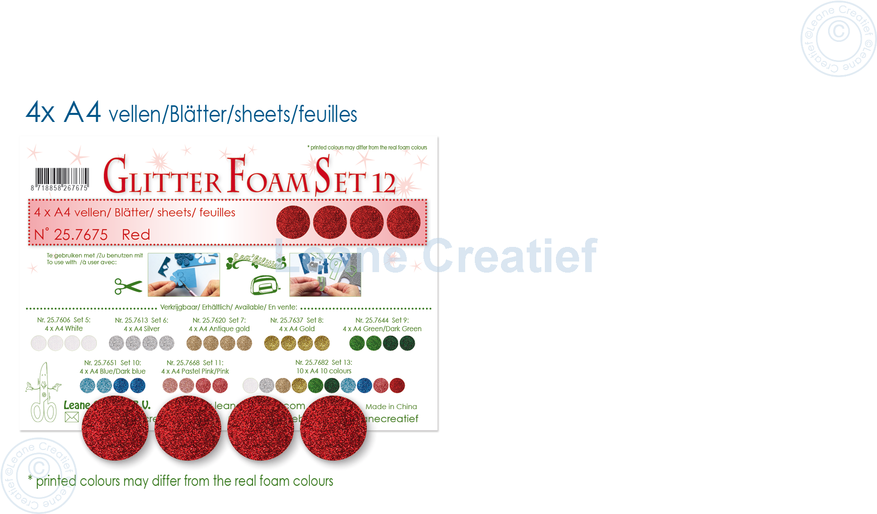 Glitter Foam Set 12, 4 Blätter A4 Rot