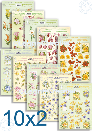set van 10x2 verschillende 3D knipvellen bloemen