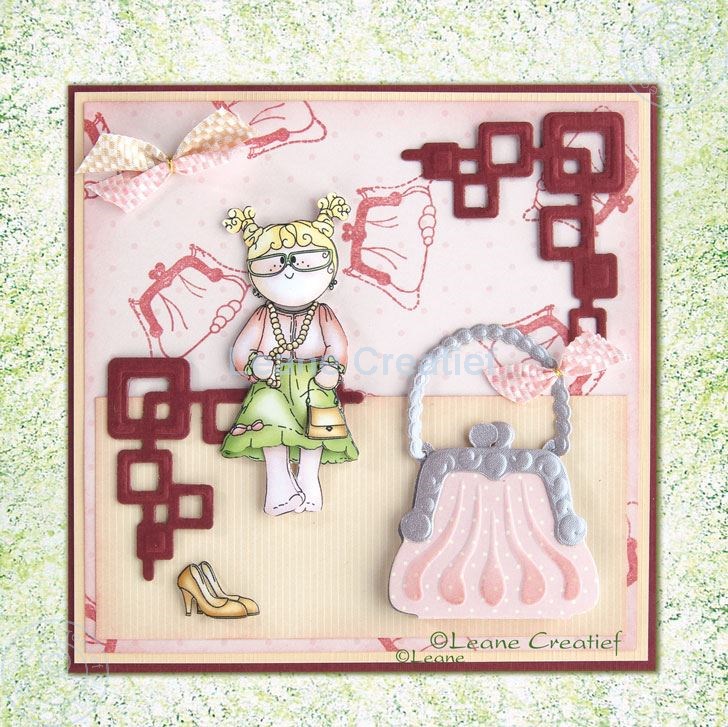 Stempel het handtasje verspreid over het papier. Stempel ook over de rand.