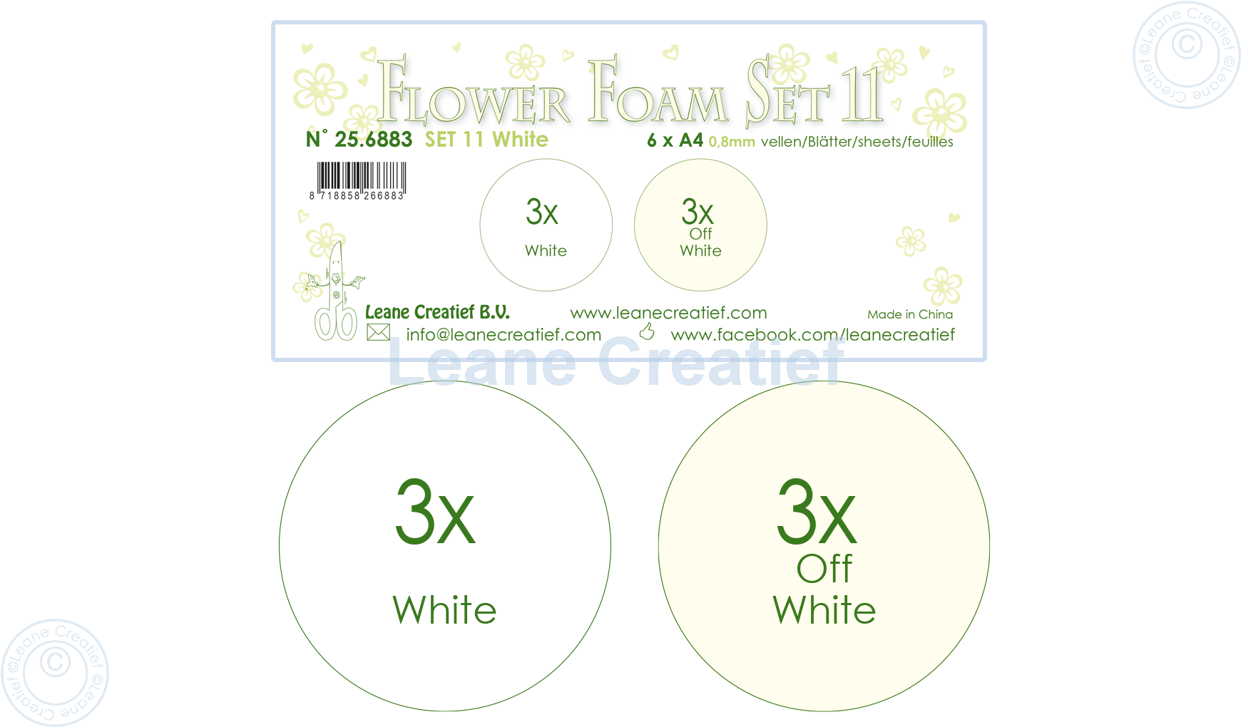 Flower Foam set 11 /6x A4 vel /3x Wit 3x Off wit